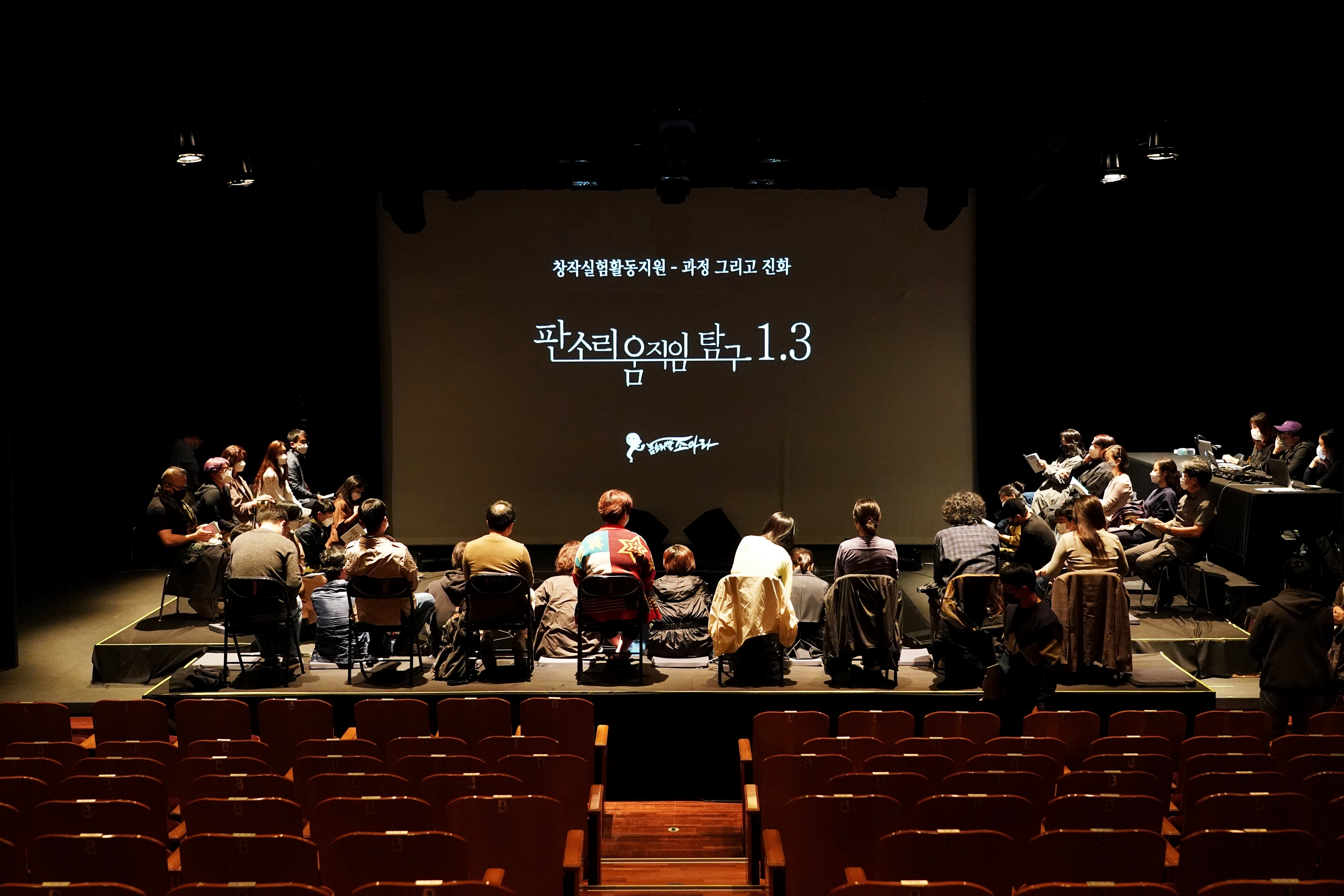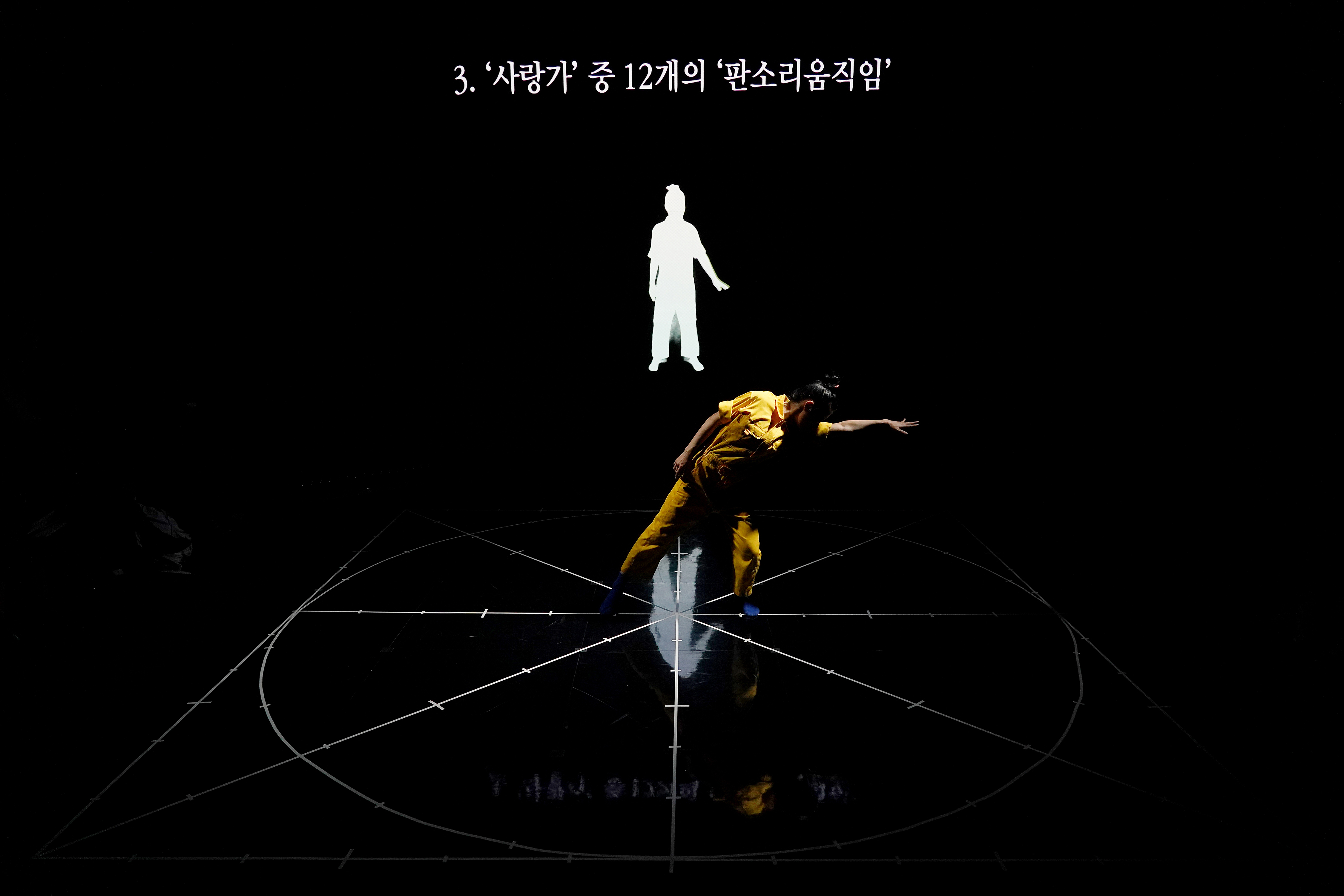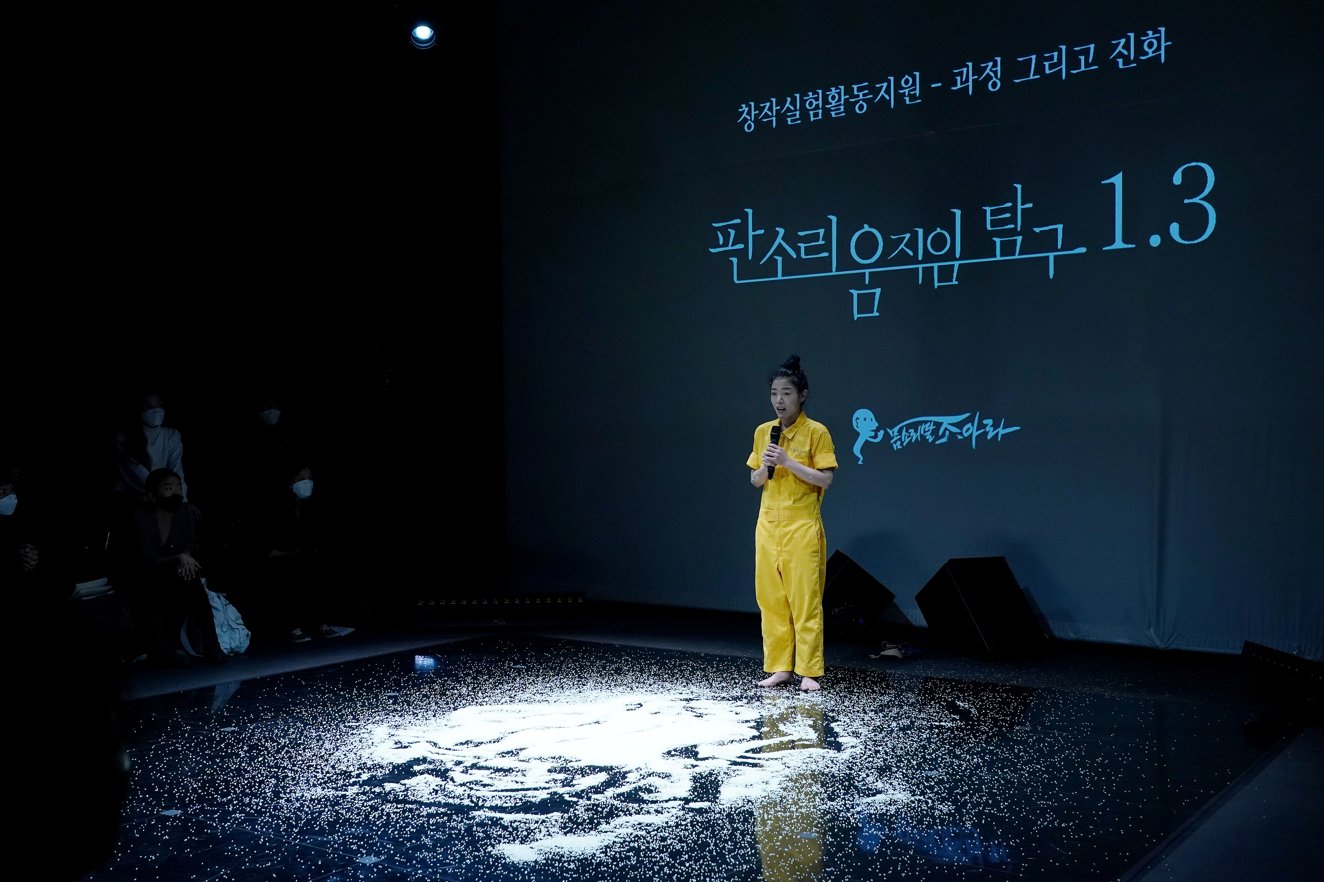 <판소리움직임 탐구 1>은 탐구의 시작으로, <춘향가> 중 ‘사랑가’ 한 대목을 통해 호흡이 장단이 되고, 장단에 얹힌 소리가 판소리가 되며, 판소리가 움직임으로 어떻게 변화하는지 탐구했다. <판소리움직임 탐구 1.3>에서는 <춘향가> 중 ‘사랑가’와 더불어 <흥보가> 중 ‘가난이야’를 중심으로 ‘울음의 몸’을 탐구하는 과정까지를 ‘렉처 퍼포먼스’ 형태의 쇼케이스로 선보인다.