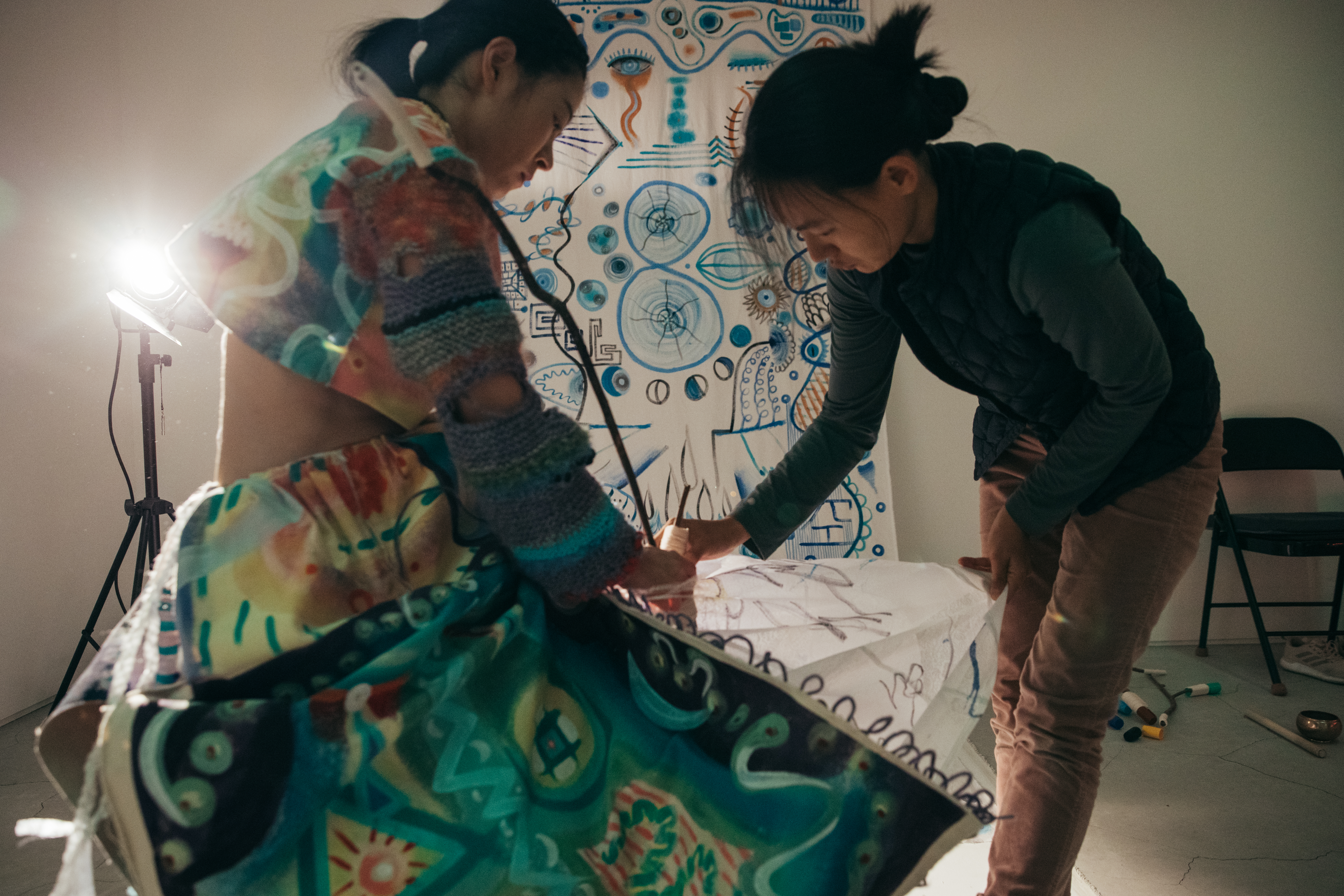 1차 워크숍은 <수궁가가 조아라>라는 창작 판소리를 배우며 각자의 예술적 뿌리가 갖고 있는 관점, 특장점 및 한계에 대해 이야기를 나눴습니다. 판소리와 연극의 연기 기법 차이 및 교수법 차이, 솔로 퍼포먼스로서의 판소리, 스탠드업 코미디로서의 판소리, 씬 파트너 (scene partner)로서의 고수, 판소리에서 듣기 (attentive listening)란 무엇인지 등등의 질문을 나눴습니다. 창극 공연 관람 후 연극과 판소리의 접점 및 창극의 장르적 한계를 뛰어넘을 수 있는 방법은 무엇이 있을 지에 대한 이야기를 나누었습니다. 이야기에서 파생된 다양한 질문을 수집하고 2차 워크숍의 방향성을 설정한 뒤 약 4개월간의 쉼의 시간을 가졌습니다.